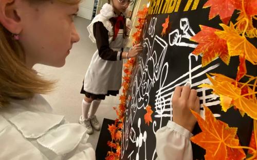 В фойе клуба оформлена фотозона ко Дню знаний.